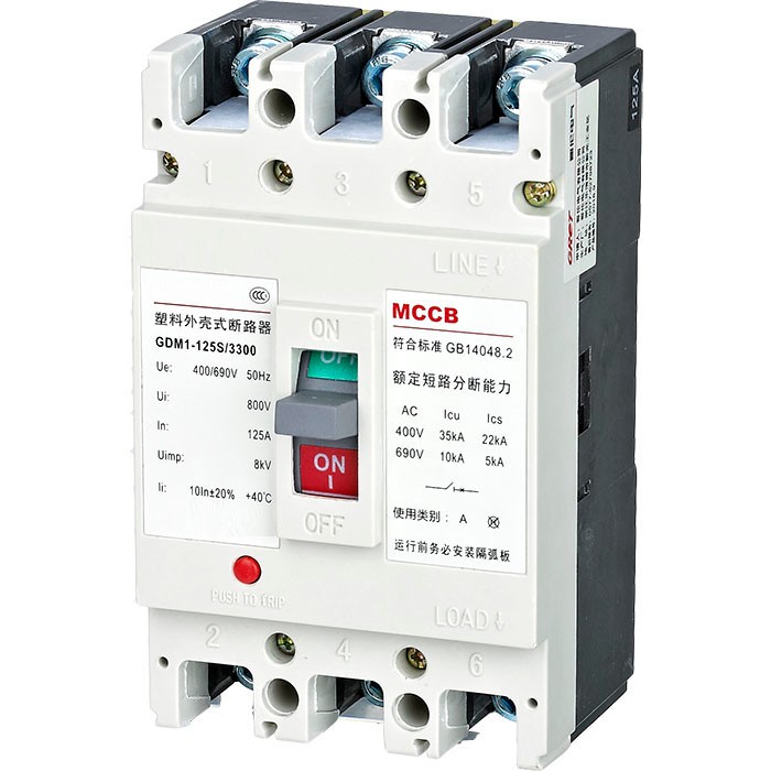 GDM1系列塑料外殼式斷路器適用于交流50Hz或60Hz,絕緣電壓800V(1000V),額定工作電壓至690V的配電網(wǎng)絡(luò)電路中,用來分配電能和保護(hù)線路及電源設(shè)備免受過載、短路、欠電壓等故障的損壞。同時也能作為電動機(jī)的不頻繁啟動及過載、短路、欠電壓保護(hù)。該斷路器具有體積小、分?jǐn)嗄芰Ω?、飛弧短(或無飛弧)等特點,斷路器垂直安裝(即豎裝),亦可水平安裝(橫裝),是用戶使用的理想產(chǎn)品。